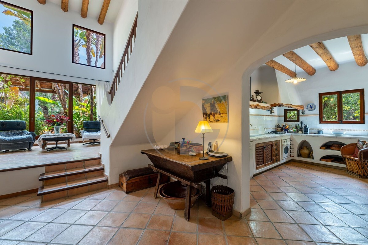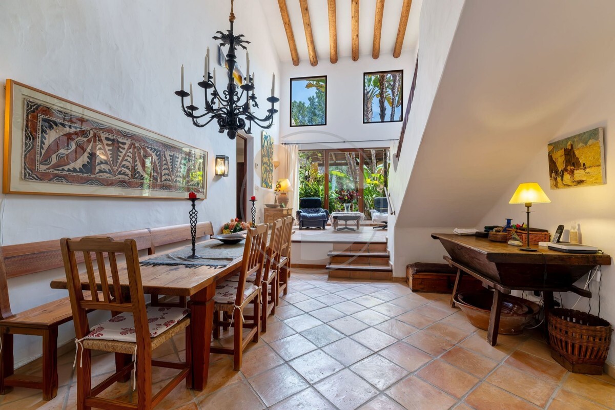 Diese außergewöhnliche Villa mit drei Schlafzimmern befindet sich in der ruhigen Nachbarschaft von Bonaire im Norden Mallorcas und bietet eine perfekte Balance aus rustikalem Charme und modernem Komfort. Die Immobilie besticht durch ein markantes Design, das oft auf dem spanischen Festland zu finden ist, und verleiht dem Haus eine einzigartige und gemütliche Atmosphäre, nur wenige Minuten von einigen der schönsten Strände im Norden Mallorcas entfernt.Beim Betreten der Immobilie bemerken Sie sofort das großzügige Raumgefühl, das durch die doppelten, mit Balken versehenen Decken verstärkt wird. Die zentrale Eingangshalle dient als Herzstück des Hauses, von der aus sich ein Wohnzimmer und eine Küche abzweigen. Am hinteren Ende dieses Bereichs finden Sie direkten Zugang zum Garten und Poolbereich.