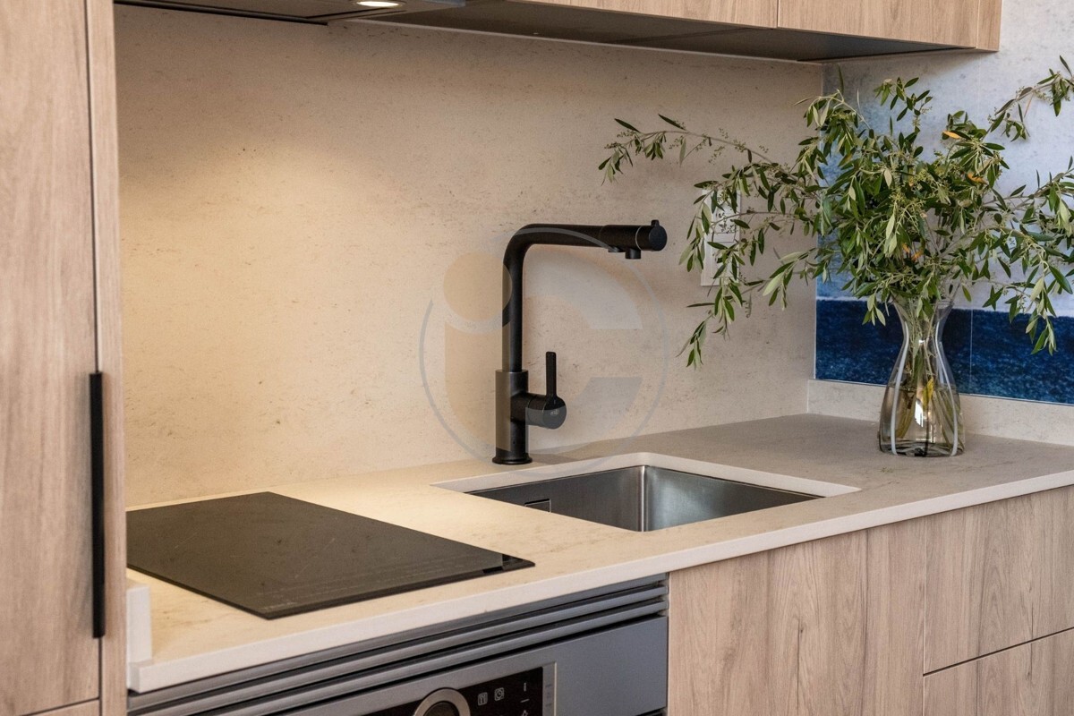 Das Erdgeschoss präsentiert einen offenen Wohn-, Ess- und Küchenbereich. Dieser elegante Wohnraum erstreckt sich direkt zur ersten von vier Terrassen, die Möglichkeiten zur Entspannung und Sonnenbaden bieten. Die hochmoderne Küche und der Essbereich bieten ebenfalls direkten Zugang zu einer zweiten Terrasse und einem zusätzlichen Essbereich im Freien, der sich ideal zum Bewirten eignet.