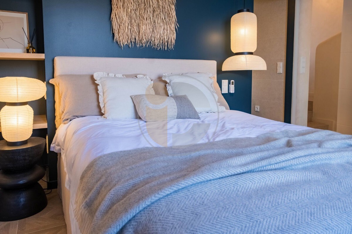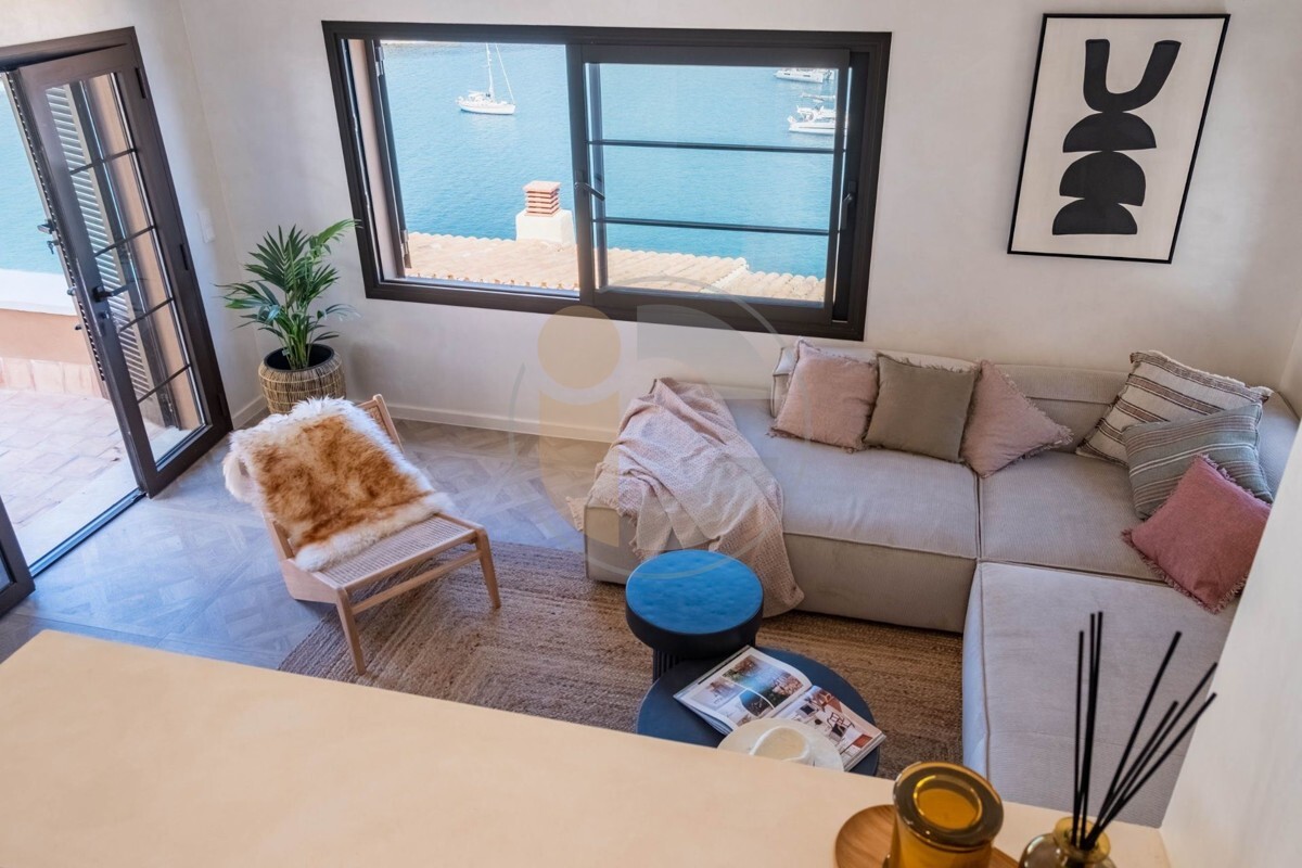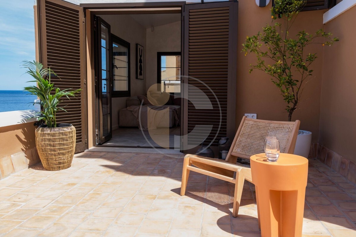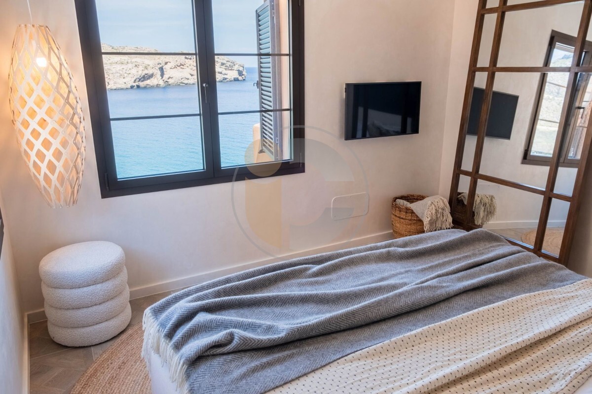 Der erste Stock umfasst zwei geräumige Schlafzimmer. Das Hauptschlafzimmer, das über ein eigenes Badezimmer und eine private Terrasse verfügt, bietet eine ruhige Umgebung. Das zweite Schlafzimmer ist hell und bietet Ausblicke auf das klare Wasser von Cala Carbó.
